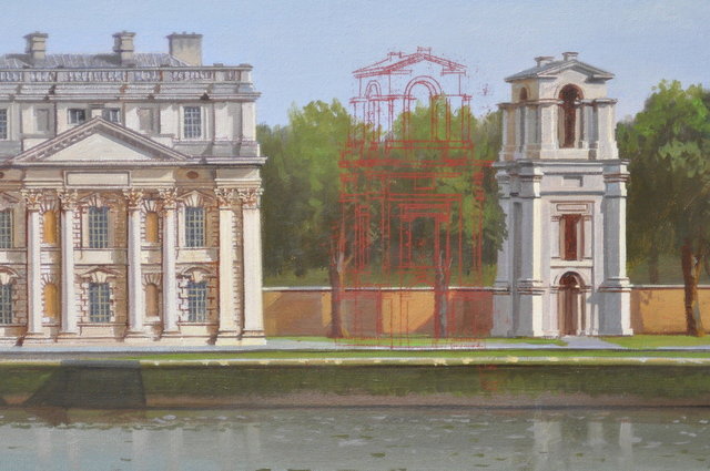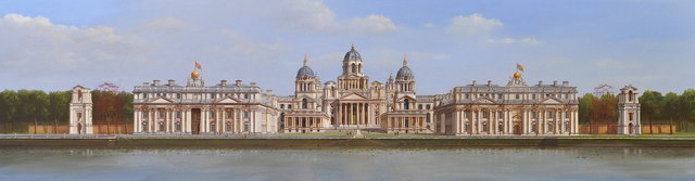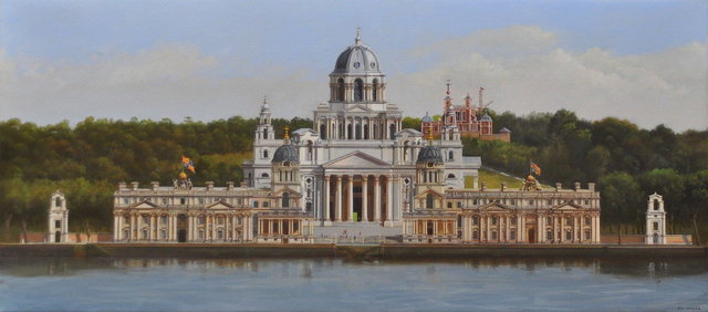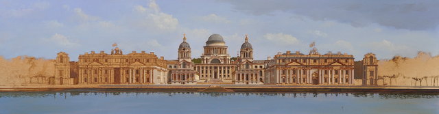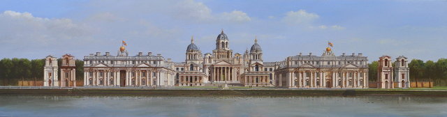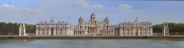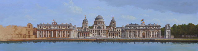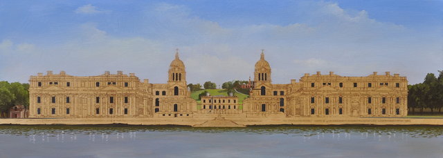 In the summer of 2018, I was asked to do a capriccio painting of significant buildings in Greenwich. To get my interest, I was given a book written by John Bold on the history of the Royal Hospital for Seamen at Greenwich, always one of my favourite places. I think it was probably the first place I visited when I came to England in 1973. I remember being taken there by Steve Peterson in his VW bus on one of our first days in London.