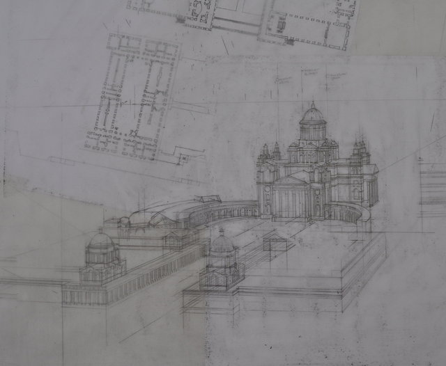 Drawing on canvas for Hawksmoor’s Third Scheme Perspective: