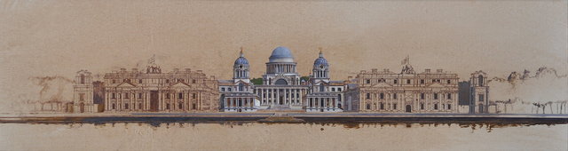 I decided one more Greenwich painting would be worth doing – an ‘as built’ version without the Hawksmoor chapel, so one had a comparison..