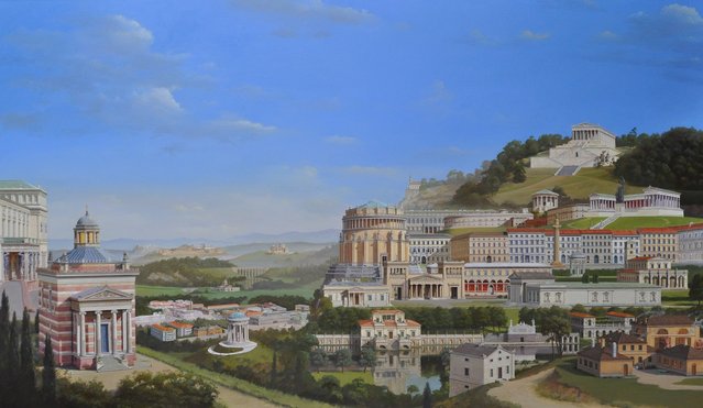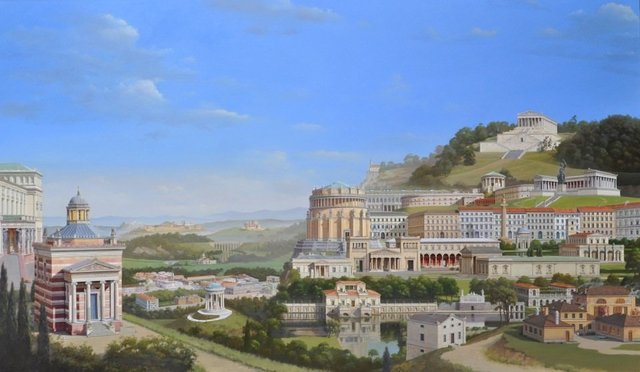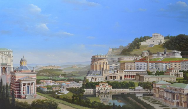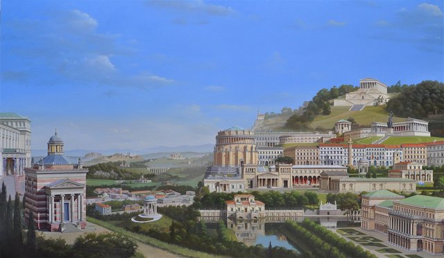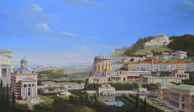 I think the fervent belief in what he was doing is clearly expressed in his writing, “Just as Palladio became great and immortal through an inspired adaptation of Roman architecture, to the exigencies of his own country and time, I shall attempt to do likewise with the works of the Greeks; that is the only way to be anything more than a pale plagiarist”; and my little book on Klenze’s paintings movingly cites his urban design as fulfilling Goethe’s measure of great architecture that “On the most ordinary day the citizens feel themselves to be in an ideal state.” I believe he was very confidently creating a city to rival the best of Europe.