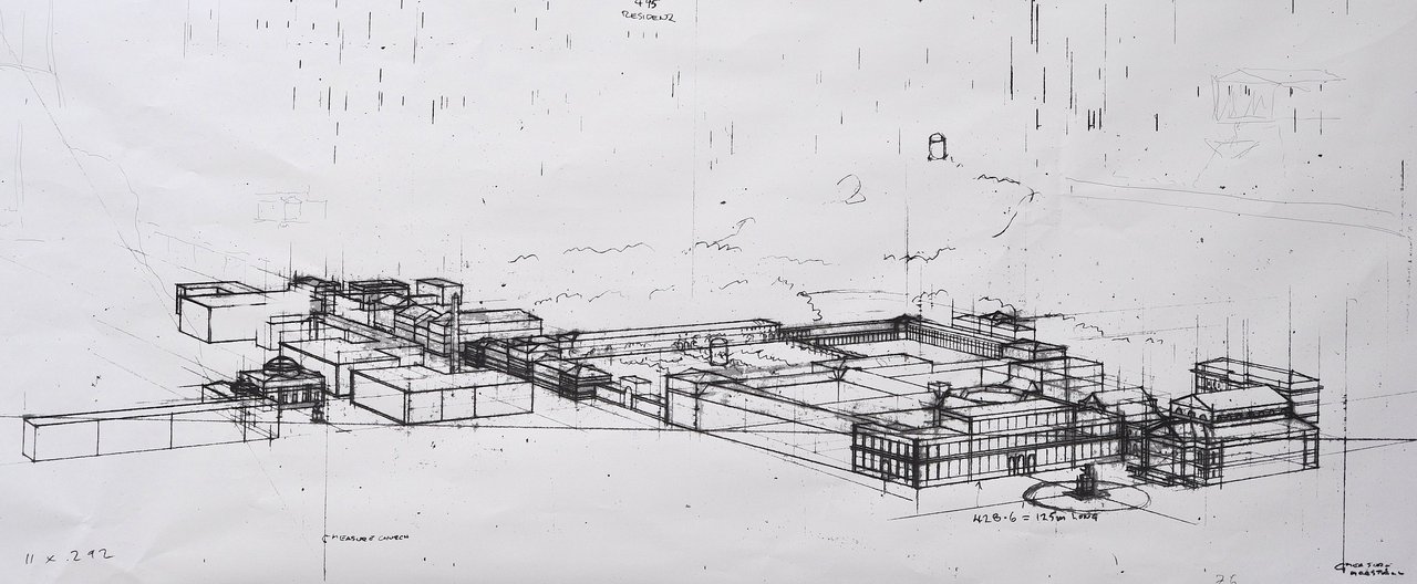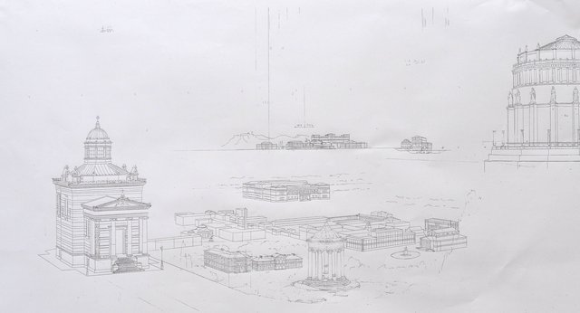 Roughly sketching out the idea, it seems to have a lot of potential; an overview of urban design and a closer inspection of the architecture.