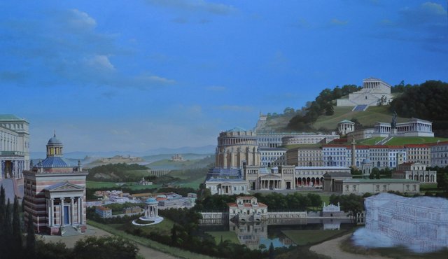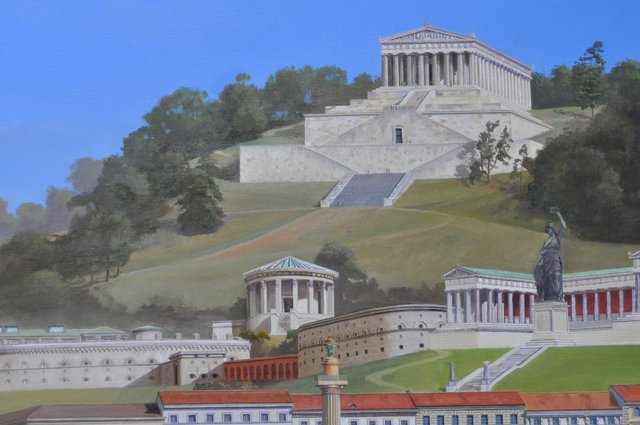 I could put the Festsaalbau up on the hill between the Ruhmeshalle and Walhalla but I think those temples should have the hills to themselves and not be crowded by urban buildings.