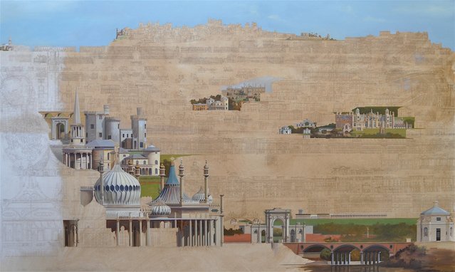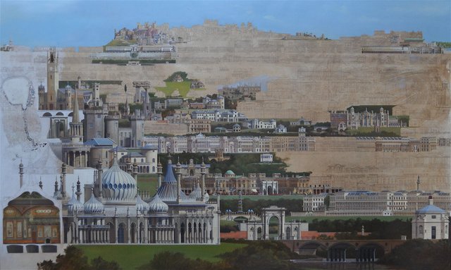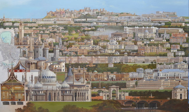 Meanwhile, visiting Brighton, I saw some wonderful detail drawings of the tent roofs on the Pavilion and was sent copies by the curator. They are truly wonderful drawings and I must find a way to incorporate them. Perhaps used as a drawing they could combine with a drawn map of the West End, giving a two dimensional portion of the painting that could intensify the three dimensionally rendered portion.